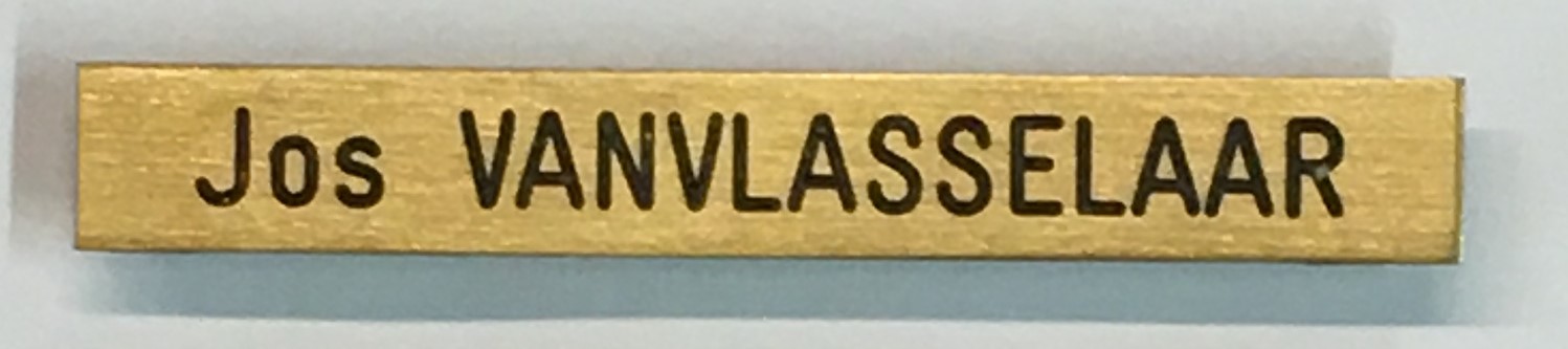 Naamplaatje met pinnetjes + gravure