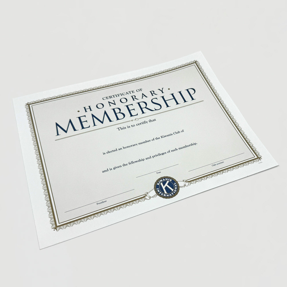 “honorary member” certificaat